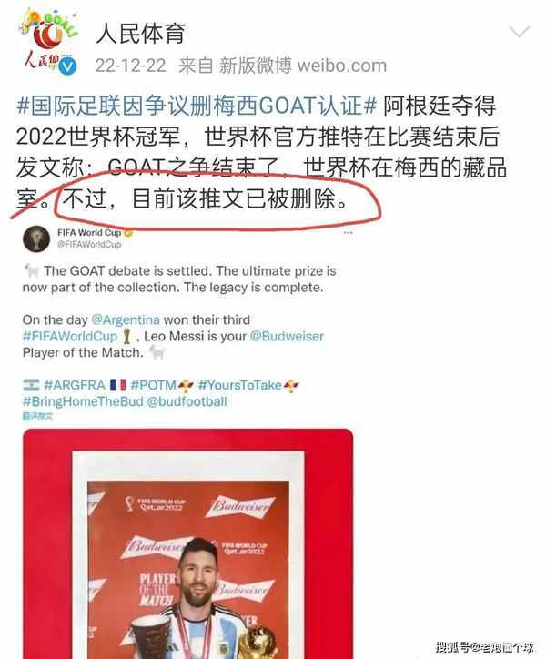 随着梅西在卡塔尔世界杯夺冠,各大媒体和一些知名人物都纷纷把梅西称为足球界的goat,在这种舆论趋势下,FIFA官方也顺水推舟,发出了一条梅西是goat的推文,很多球迷也把这条推文当作是梅西加冕球王的官方认证。然而,在这条推文发出一天之后,FIFA官方却主动把它删除,那么,FIFA官方为什么会这么做呢?