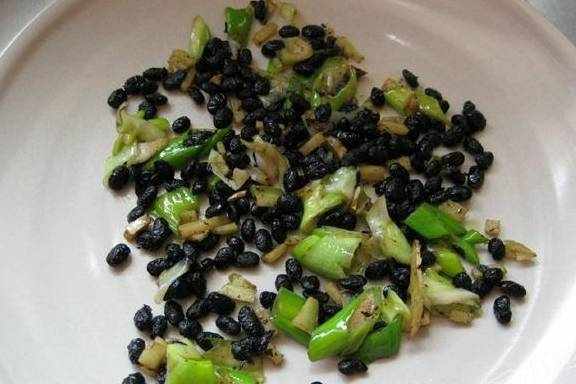 2.锅里油热了将豆豉煸炒一下