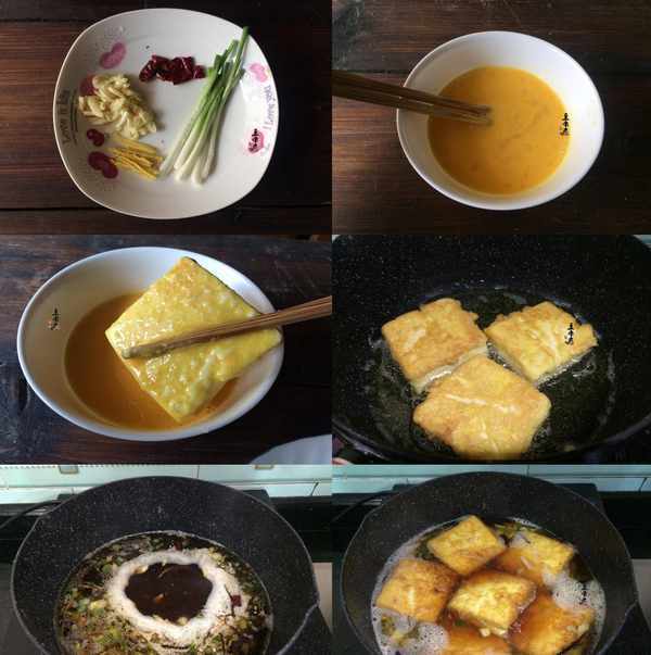 Tips:煎豆腐的时候要注意火候。另外,豆腐上的淀粉主要吸收蛋液,让口感更加完美。