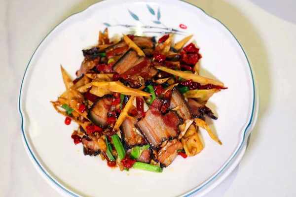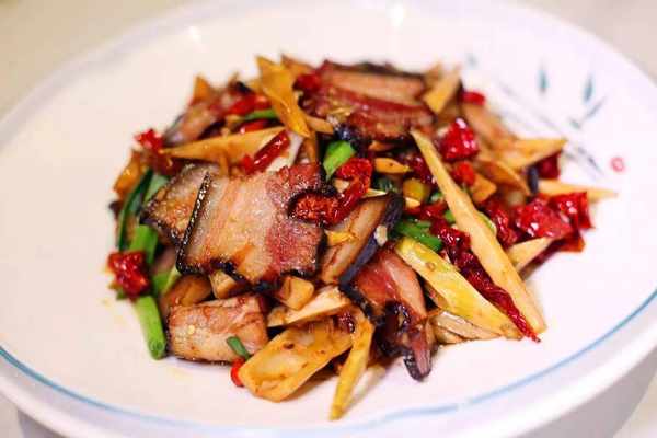 腊肉是湖南著名特产。湖南腊肉以安化腊肉最为出名,色彩红亮,烟熏咸香,肥而不腻,鲜美异常。