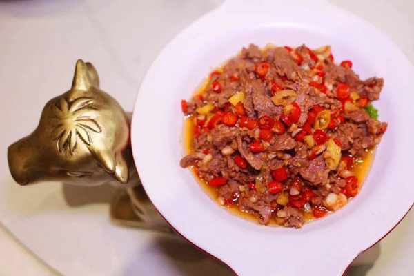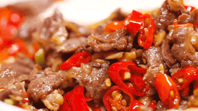 小炒黄牛肉是以牛肉、青尖椒、红尖椒等食材制成的一道菜品,香味浓郁,味道鲜美,十分诱人!