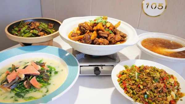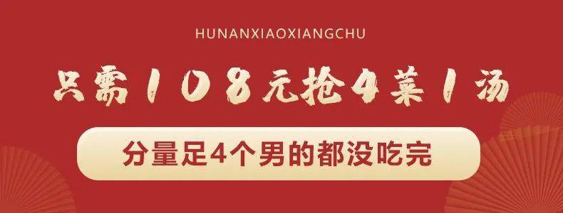 湘厨辣椒炒肉、酸萝卜爆肚丝、鱼香肉丝(3选1)+湘厨土公鸡、湘潭跳水鱼、白灼虾(3选1)+酸豆角炒肉沫、干锅小土豆、小炒攸县香干(3选1)+上汤时蔬、口味长豆角、蒜蓉油麦菜(3选1)+红枣银耳汤+米饭4份+餐具4套