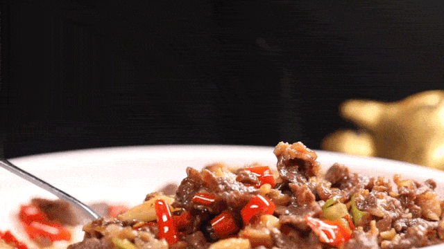 牛肉质感十足之余,还能保持嫩滑;剁椒的辣味和鲜味渗入每片牛肉中,吃了一口忍不住再吃一口,口口上瘾!