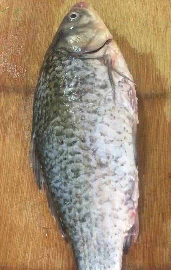 新鲜鲫鱼一条,宰杀清洗干净,刮掉鳞片(某些地区不处理)挖点肠子,里头的黑膜要拔掉,否则煮出来的汤汁味道很苦,有些人说它有营养,但是营养专家并不认可。