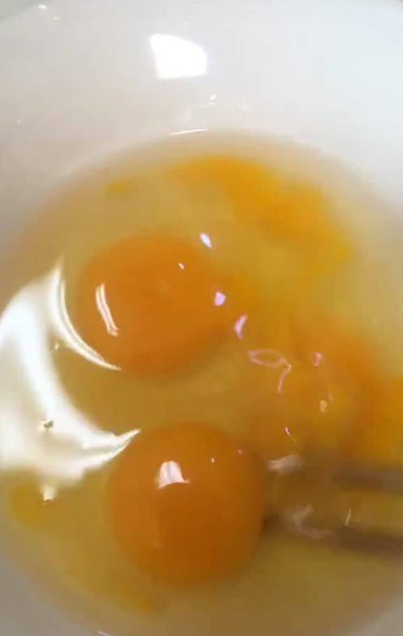 准备三个鸡蛋,加入适量的清水打散备用,这样煮出来的蛋羹又嫩又爽滑,孕妇非常容易消化。