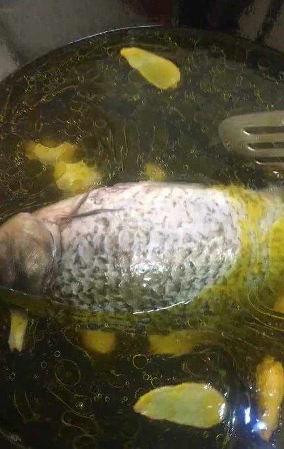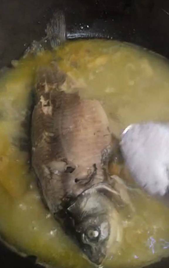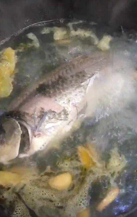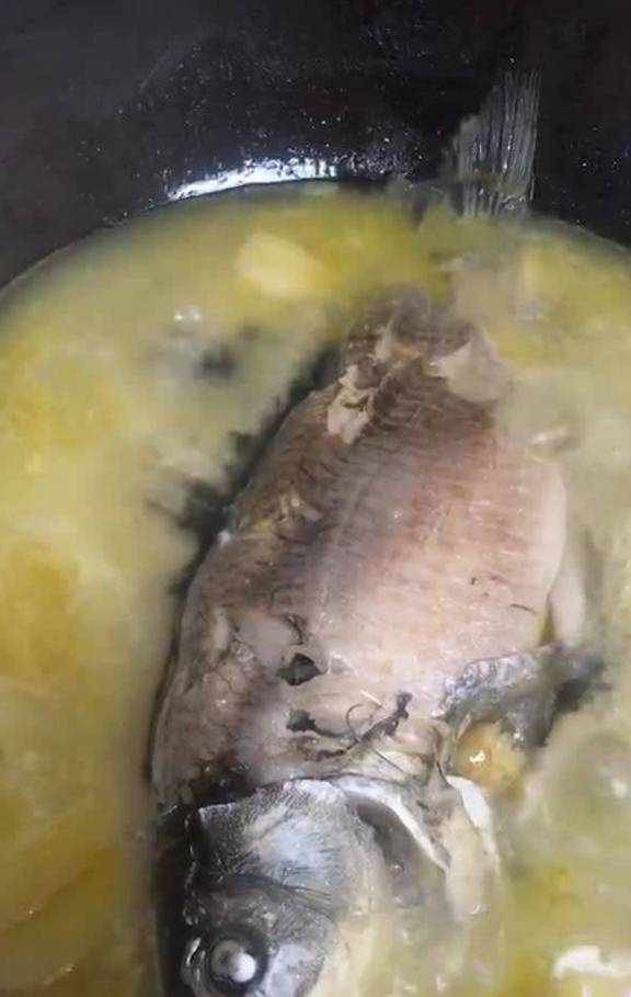 此时记得不要盖锅盖,让鱼腥起随着蒸汽大量散发出去,等汤汁再次烧开的时候,再盖也不迟。