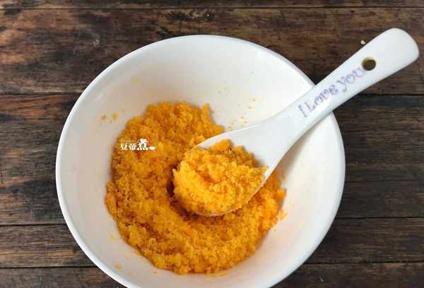 材料:金奇香咸蛋黄3个、南瓜半个、优质白酒1小杯、炒粉少许