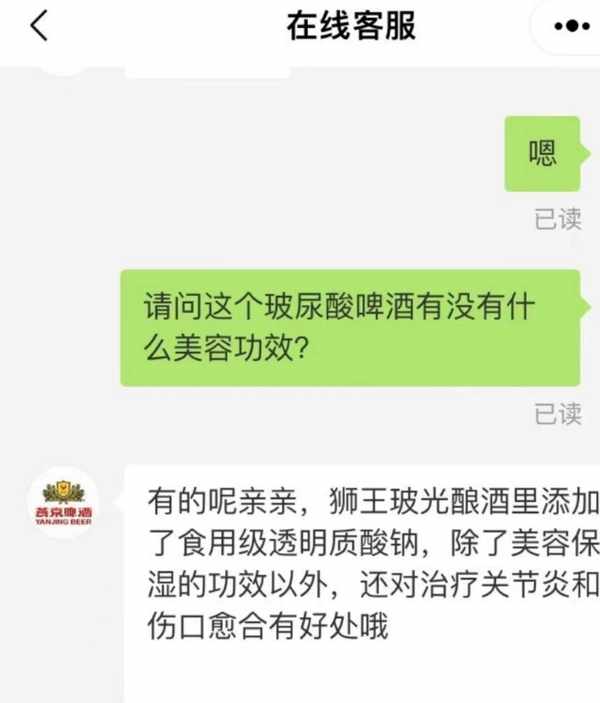 3月10日,红星资本局再次在燕京啤酒公示的多渠道询问,该款“玻尿酸”啤酒是否具有美容保湿等功能,客服一改此前表述,否认了美容等功效,表示该款产品仅为“适口的果啤”。