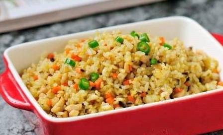 一道大人小孩都爱吃的香菇鸡丁胡萝卜蛋炒饭就已经完成了。