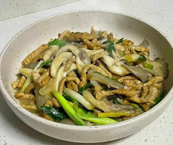 大蒜叶平菇炒肉丝是一道荤素开胃的菜肴,肉质特别鲜嫩,平菇非常细腻,搭配一些大蒜叶炒一盘,香味扑鼻,好吃又下饭。