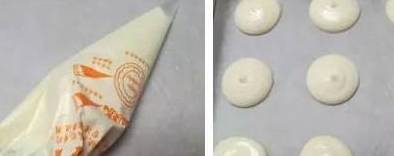 3、然后放装入裱花袋中,在烤盘上挤出八个圆形;