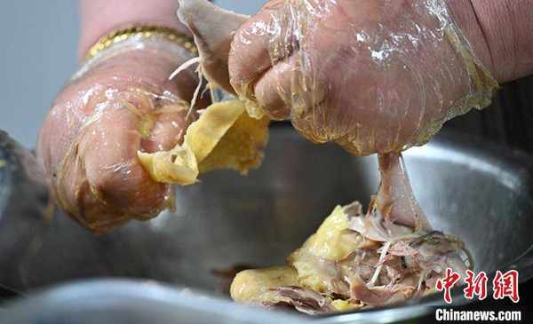 椒麻鸡是新疆的一道名菜,融合了麻和辣的味道。在新疆各地椒麻鸡都很受青睐,尤其在夏天的夜市,椒麻鸡几乎是夜市里每一桌的压轴菜品。 中新社发 确·胡热 摄