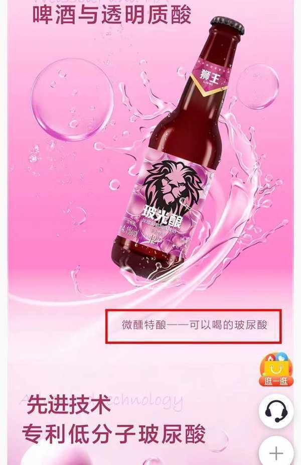 继玻尿酸软糖、玻尿酸饮用水等玻尿酸食品之后,玻尿酸啤酒又来了。3月7日,燕京啤酒电商微信公众号发送推文,新品燕京玻光酿上线售卖,其宣传语“微醺特酿——可以喝的玻尿酸”引起了不少人的关注。