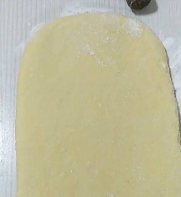 第三步:醒个十分钟,擀开,成长方形,厚度半厘米