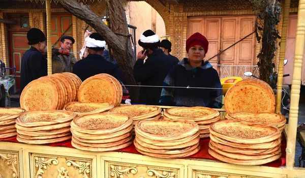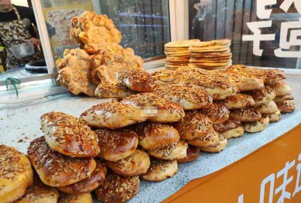 以前去过几次新疆烤肉店,但是从来没有觉得他们家的馕饼这么好吃。听朋友说没有添加其他成分,基本上只能存放一两天。他说,他们现在把馕饼推到门口吸引人,现在也有人一个一个过来买。五块钱很多,价格也不贵。