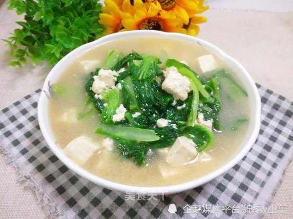 小白菜,内酯豆腐,盐,味精,鸡精,胡椒粉,香葱,香油。