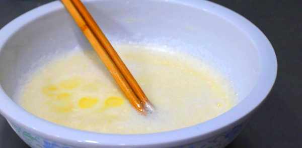1、准备一个小锅,打4个鸡蛋,蛋清蛋黄分离,放入另一个小锅中;蛋清碗里加入一茶匙盐,搅拌几次,加一点水,不断搅拌,加一点面粉,顺时针搅拌,面粉可以一个一个加,搅拌成比较流动的面团,然后加入少许植物油,调匀。