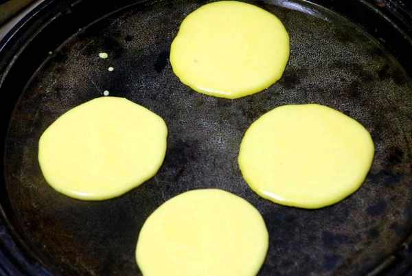3、电炒锅烧热,倒入少许食用油,用勺子舀一勺面团,放入锅中加热,待面团慢慢凝固。