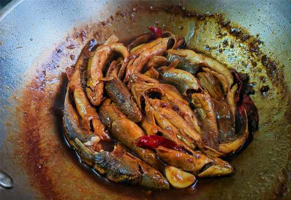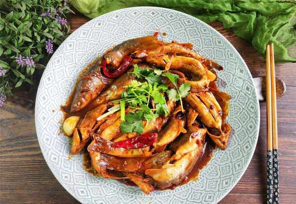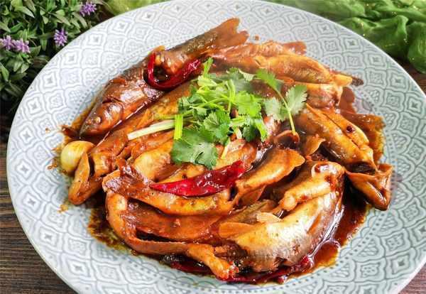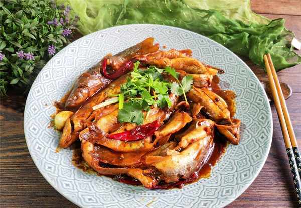 【酱焖柳根鱼】所需材料:柳根鱼1斤、香菜1棵、油盐适量、葱1段、姜2-3片、大蒜3瓣、香其酱50克、酱油1汤匙、料酒1汤匙、花椒几粒、八角1个、干辣椒3-4个、白糖少许、味精1茶匙、