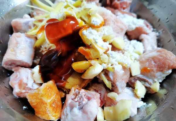 具体做法:首先将排骨炖成大小均匀的块状,剁好后放入冷水中浸泡三十分钟,把排骨的血水泡干净,泡好的排骨用清水反复冲洗后放入沥水篮中控干水分备用,取一个深点儿的盆将排骨放入其中,把葱花、姜片、蒜片、花椒放入盆中,撒少许胡椒粉、鸡精、盐,倒入适量生抽、蚝油用手充分抓拌均匀,放置十分钟使其入味,然后滴上几滴食用油,撒少许淀粉,再将其抓拌均匀。