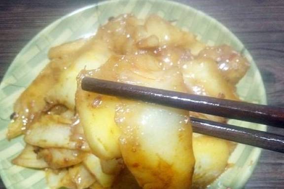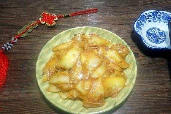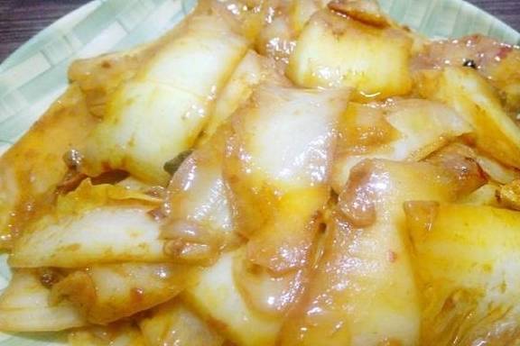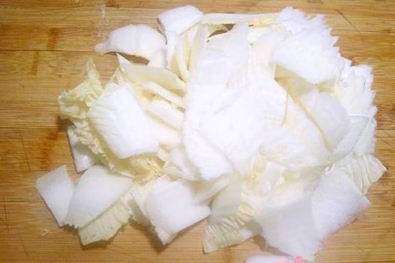 1把白菜帮洗干净,完后切成薄片!