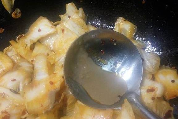 煸炒过程中,不要加水,直接煸炒透。