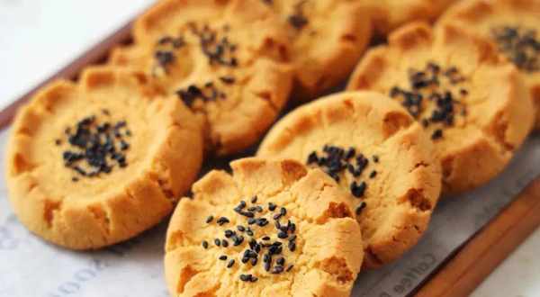 猪油60克,中筋面粉85克,低筋面粉15克,蛋黄1个,细白糖45克,盐1克,小苏打1克,泡打粉1.5克,黑芝麻适量。