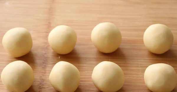 6、直接揉成长条,平均切成8个小剂子,然后把小剂子搓圆;