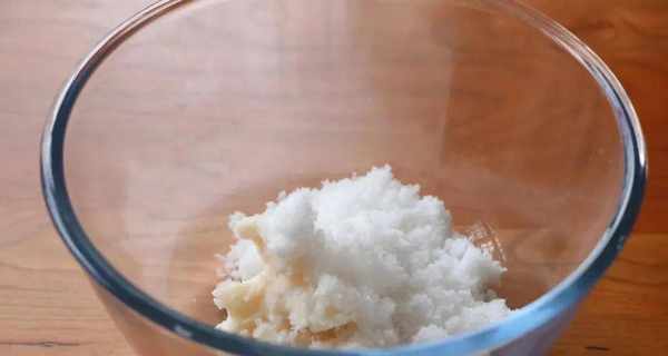 1、猪油,软猪油提前放好室温,注意不要融化,加入软白糖和盐;