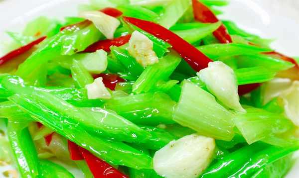 5、再次起锅,加入半勺水,一勺盐,少许糖,搅拌溶解,再加入少许水淀粉。待汤煮至浓稠时,我们加入配料,快速翻炒几下,倒入少许油简单拌匀,美味的芹菜炒菜就做好了。