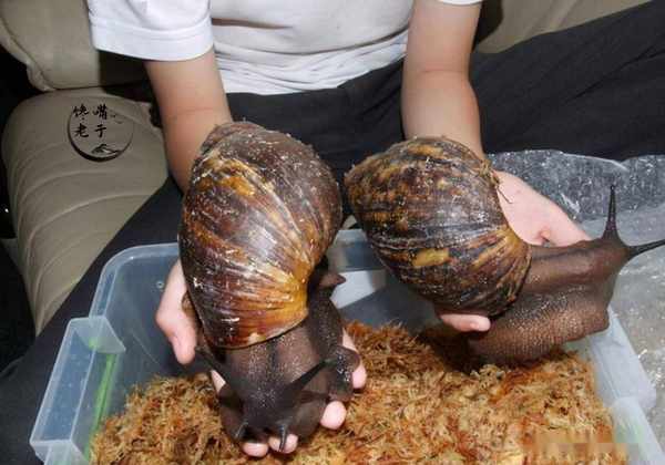 非洲大蜗牛,俗称“褐云玛瑙螺”,因蜗牛的外壳上带有玛瑙般漂亮的纹路而著称。这种蜗牛最大的特点就是繁殖速度非常快,从一只蜗牛的卵到长大性成熟,再到排卵繁殖,一次性可以排300多枚卵,关键是这种蜗牛一年排卵4次,也就是说,一只蜗牛一年就能繁殖1200多只蜗牛。