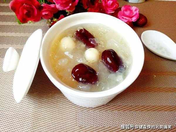 银耳和莲子加水泡发,将银耳撕成小片,冷水下锅,加适量冰糖,大火烧10分钟后转小火慢炖1小时,加入红枣调味即可。