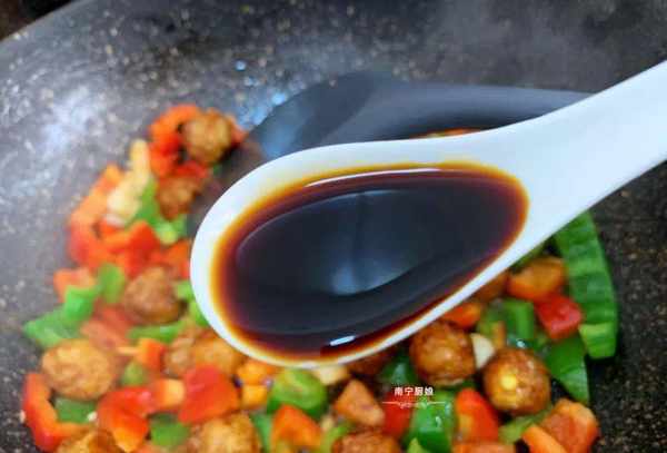 7、锅中加入一勺酱油和半勺调味用的白糖,炒匀,使菜肴入味。