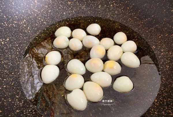 然后锅里倒入油,开始煎鹌鹑蛋;