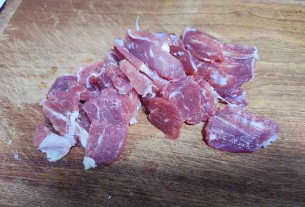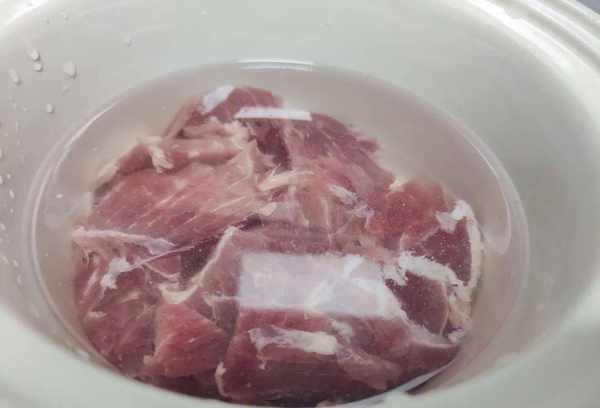 1、将准备好的瘦肉用水冲洗干净,用流水将瘦肉洗净。洗净切小块备用;