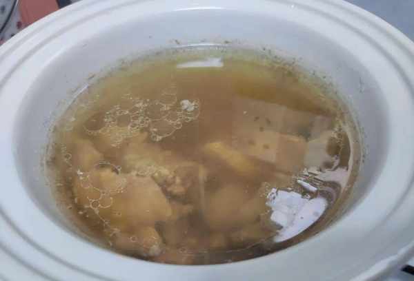 鱿鱼妈妈和肉一起炖的汤,非常香甜,非常香甜可口。如果你有时间,你可以为自己和家人做这样的汤。出锅后家里人都会赞不绝口,因为实在是太好吃了。