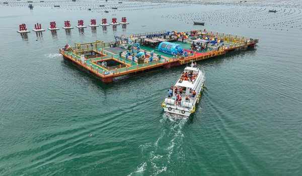 作为国家级海洋牧场示范区、全国休闲渔业示范基地,在爱连湾海洋牧场的平台上,可以体验亲海、海钓、采摘等多种海上娱乐项目,是夏季亲海戏水的胜地。