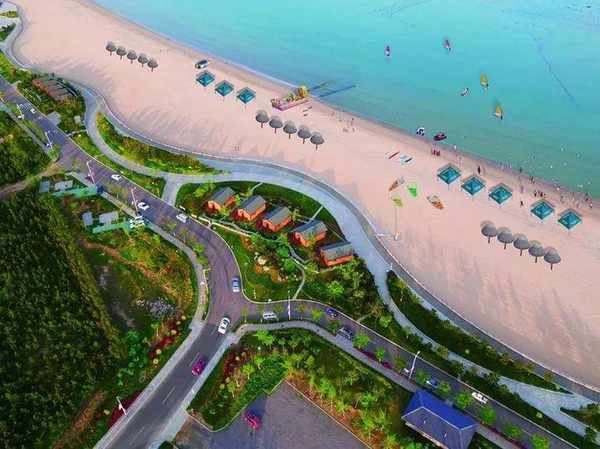 除了海上平台的游玩项目外,这里还有优美的海岸,沙滩细腻,水温适中,碧海蓝天间,沿着海湾漫步,尽情享受海风的滋润。