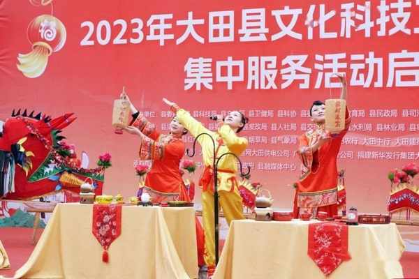 2月5日,大田职专茶艺队、余小妹省级茶艺技能大师工作室学员参加“大田县文化科技卫生三下乡”启动仪式文艺演出。