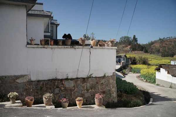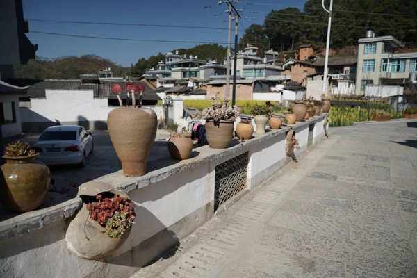 家家户户门口、窗台、墙上、路边,都是当地烧制的碗窑和阳光下生长旺盛的多肉。