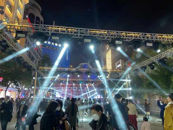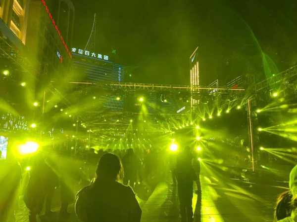 在昆明南屏街上室外蹦迪的人,灯光和音乐,如果不是我朋友说我都没意识到有推着婴儿车带着娃也来感受氛围的。可能这就是西南人民的不拘小节吧。如果在上海大概率会赶快把娃推走,担心人多且吵影响小孩。