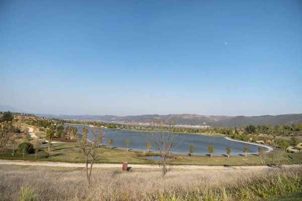 里面好多个湖,一直延申到远处公园外的大湖,冬天远看还有点萧条。