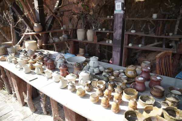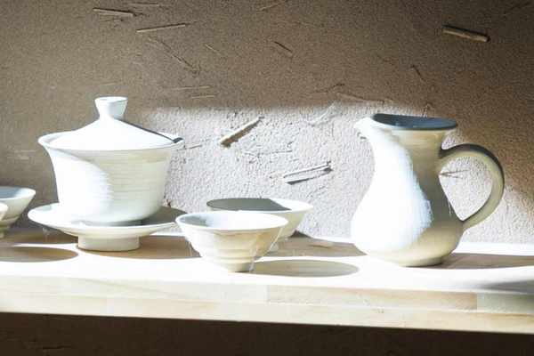 也开辟出一块地儿接待游客,可以买当地的窑制品或者体验做陶工艺。