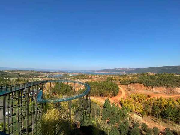 这是里面我最喜欢的玻璃栈道漂流,景色绝美,图里的右边是越野车的场地。