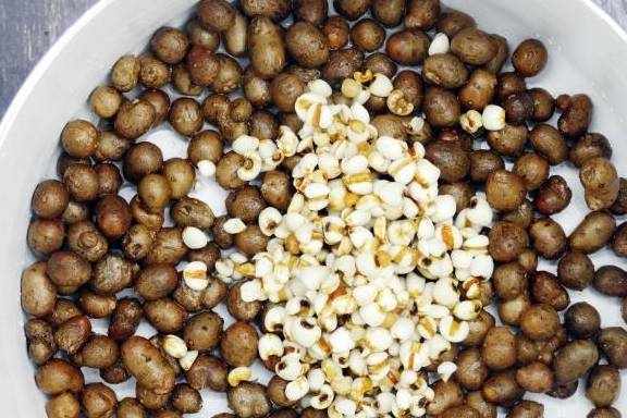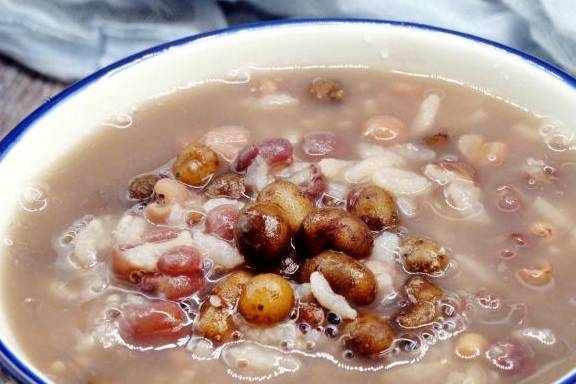 【所用食材】山药豆100克、薏米30克、红豆30克、大米30克、冰糖适量
