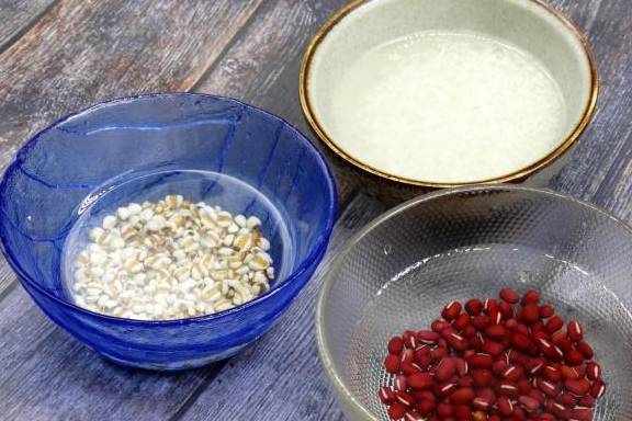 第二步:薏米洗净、红豆洗净,提前用清水浸泡1个小时备用。