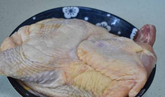 2一包盐焗鸡粉可以腌制3斤鸡,我用了半只鸡,用半包盐焗鸡粉就可以了,用盐焗鸡粉和料酒拌匀,涂抹鸡的表面,最好腌制2小时或以上。腌制的时候最好沥水。