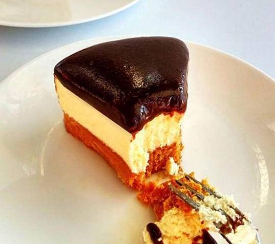 这款双色重芝士蛋糕,采用杏仁饼干底,中间是原味芝士蛋糕,上层是巧克力层。一口咬下次,三重口感,杏仁香味儿和巧克力特别搭配,加上原味芝士层,湿润细腻,入口即化,非常好吃。