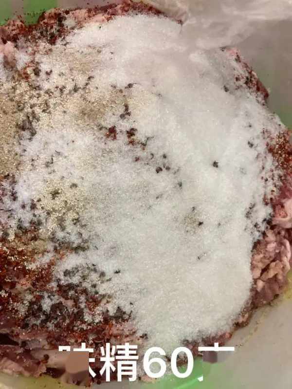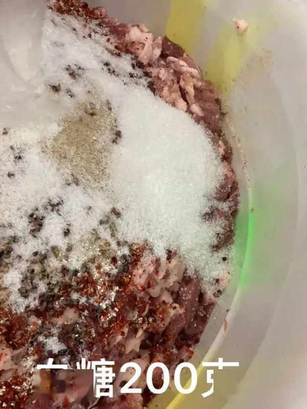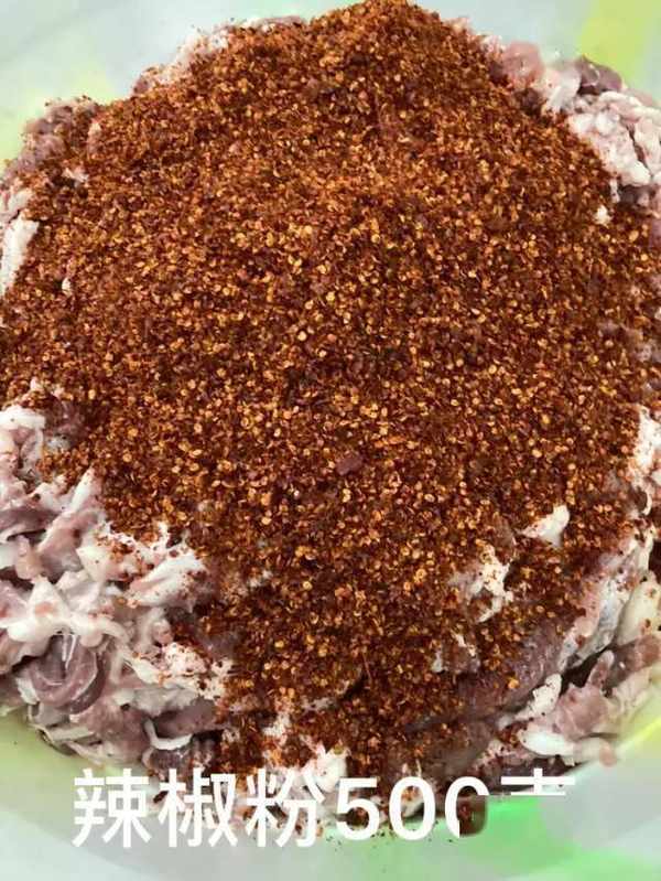 35斤肉:辣椒500克,胡椒50克,花椒粒100克,白糖200克,盐300克,白酒300克,味精80克。
