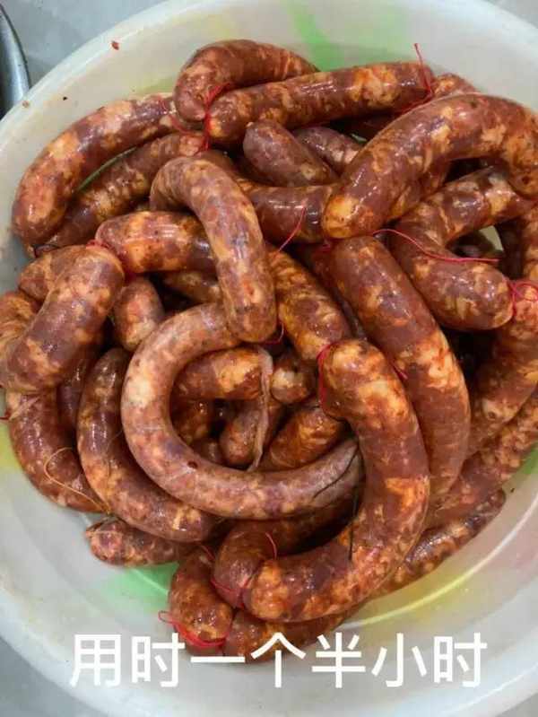 我是前几年在网上买的一个灌腊肠的简易机器,20多块钱,用起来方便快捷,35斤肉,真正灌腊肠的时间只用了1个半小时。不算前期切肉的时间哈。